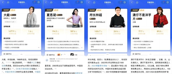 我们发现,不仅是辛巴,包括“表”哥大能、“跨栏女神”夏思凝、财经博主所长林超、锦鲤女神“潇仔不是洋芋片”等一批重磅达人也在涌入“我的百科”。如今,“我的百科”正成为公众人物首选的互联网名片,成为公众人物与大众群体沟通了解的桥梁。