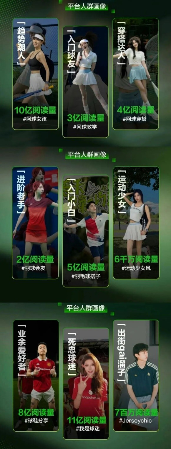 当对于运动,人们不再只是关注赛事比分或球星动态,还聚焦“什么运动适合下班后放松休闲”、“什么颜色的球鞋更适合出街”、“什么运动和露营最搭”等生活话题,这就表明,运动正从“观看行为”向“生活体验”不断拓展。