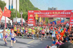 羚锐制药2023新县红旗飘扬半程马拉松鸣枪开跑