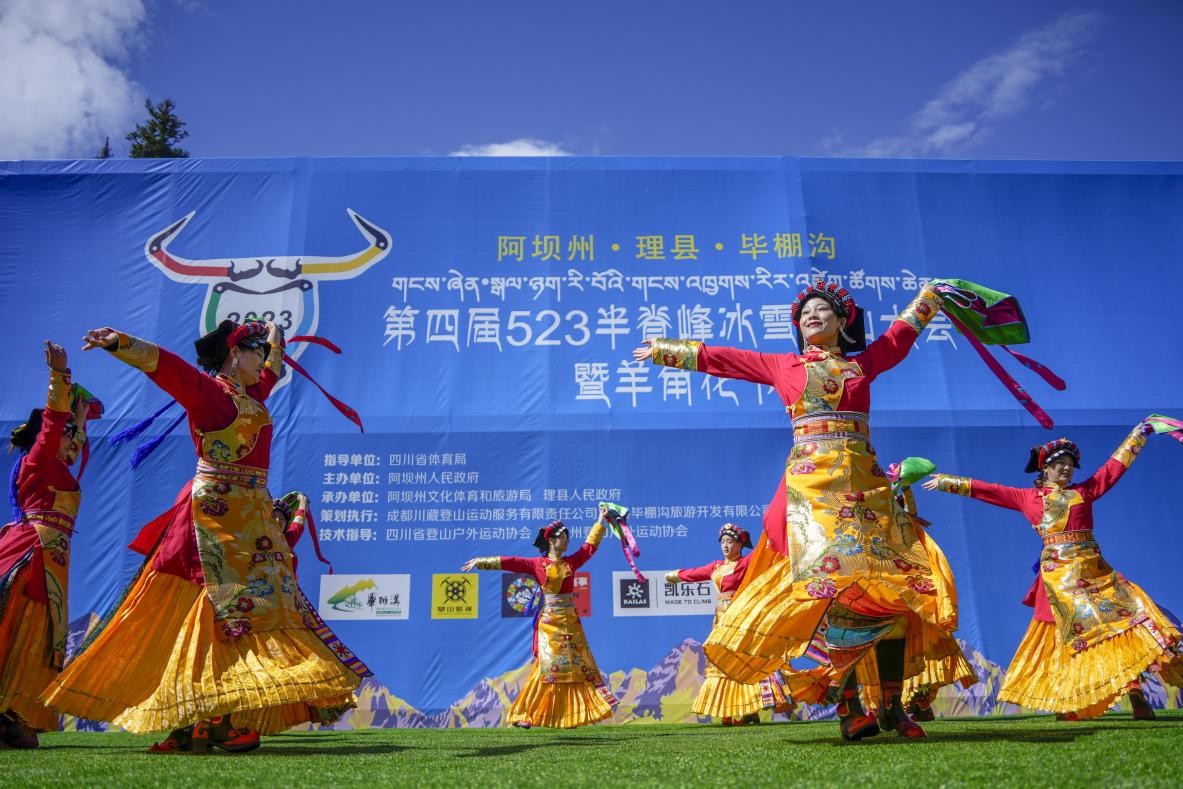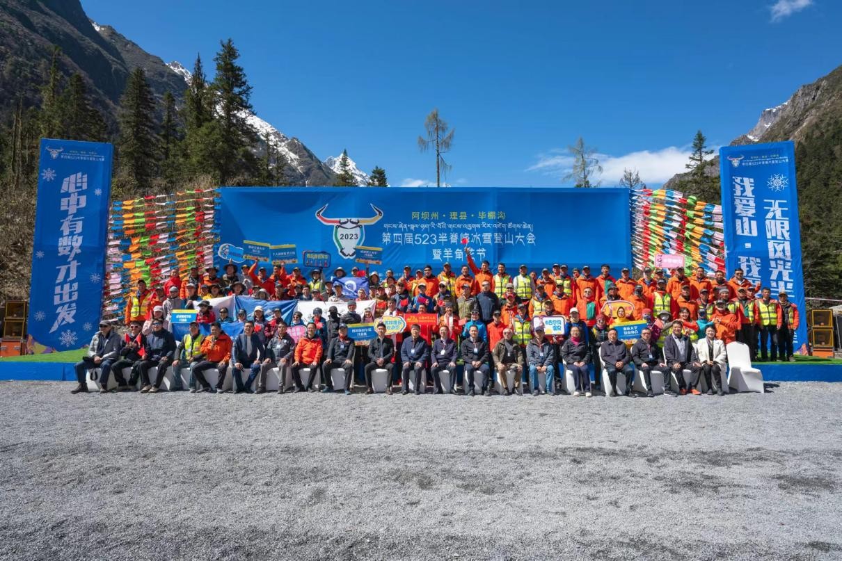 5月20日,第四届523半脊峰冰雪登山大会暨羊角花节开幕式在山花烂漫的阿坝州理县毕棚沟景区举行,来自全国各地的登山爱好者将向半脊峰发起冲锋。