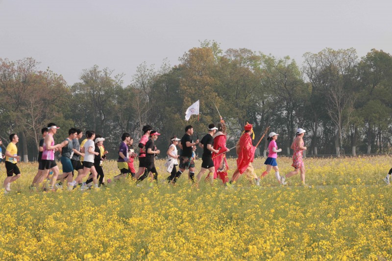早上7:30,随着发令枪响,参赛选手如潮水般涌出起点。春暖花开,微风拂面,现场洋溢着全民体育盛宴的热烈气氛。赛道上,一个个参赛选手身姿矫健,步伐铿锵,引来观众阵阵喝彩;一群群企业跑团身着统一服装,犹如流动的彩虹,成为赛道上的一道靓丽风景;一位位跑友造型各异,哪吒、敖丙、孙悟空……为赛道增添了许多趣味。